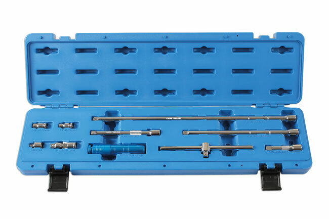 10 essential tools for driving sockets including 4 x extension bars: 75mm/150mm/250mm/460mm